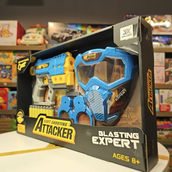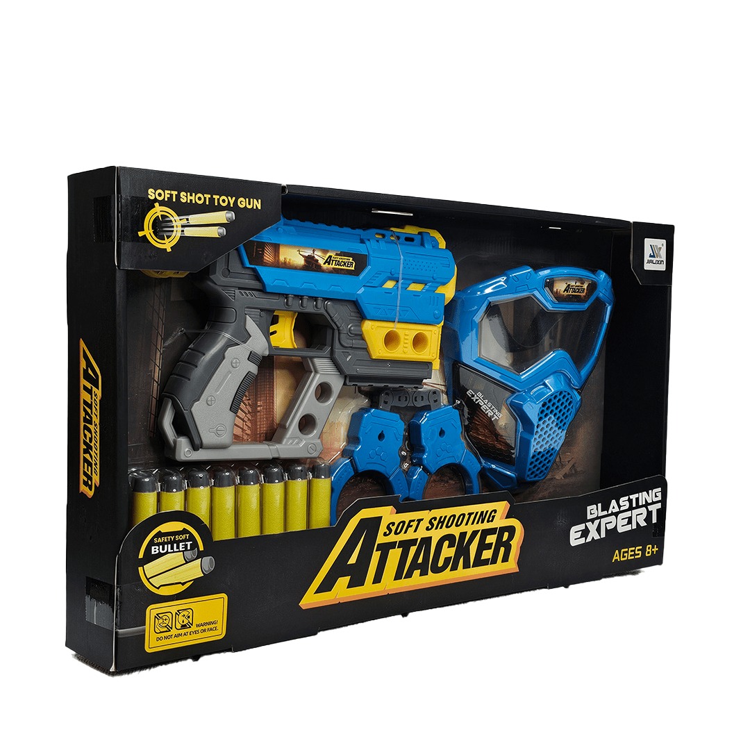 „Attacker“ რბილი ტყვიების სათამაშო თოფის ნაკრები კომფორტული პისტოლეტი, დამცავი ნიღაბი და ხელბორკილები – სროლისა და თავგადასავლების სრული პაკეტი!